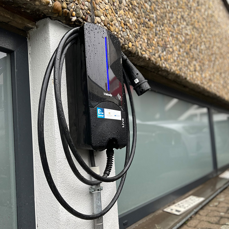 Auch für E-Fahrzeuge von Kunden und Besuchern stehen die Wall-Boxen am Besucherparkplatz des Bürogebäudes selbstverständlich zur Verfügung. Die Investition wurde vom Land Baden-Württemberg mit einer Förderung unterstützt.